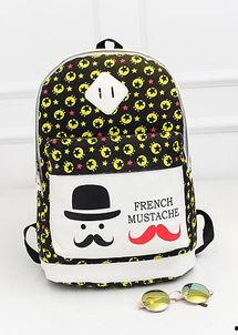 1. 休闲装:搭配T恤、牛仔裤,再配上这款八卦印花书包,轻松打造出时尚休闲的穿搭风格。